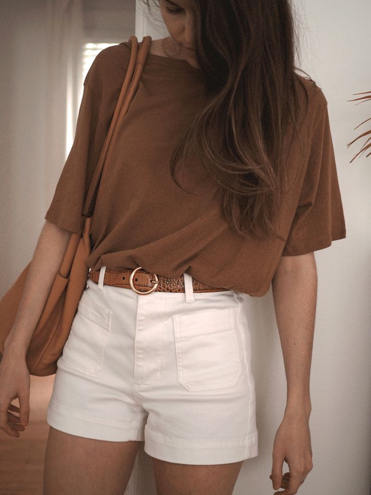 - Earthy Brown Tee: Its relaxed fit offers a contrast to the structured shorts.