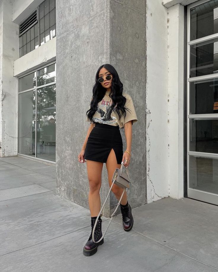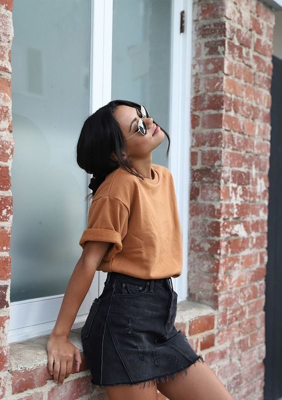 - Black Denim Skirt: Adds contrast and a hint of grunge to the outfit.