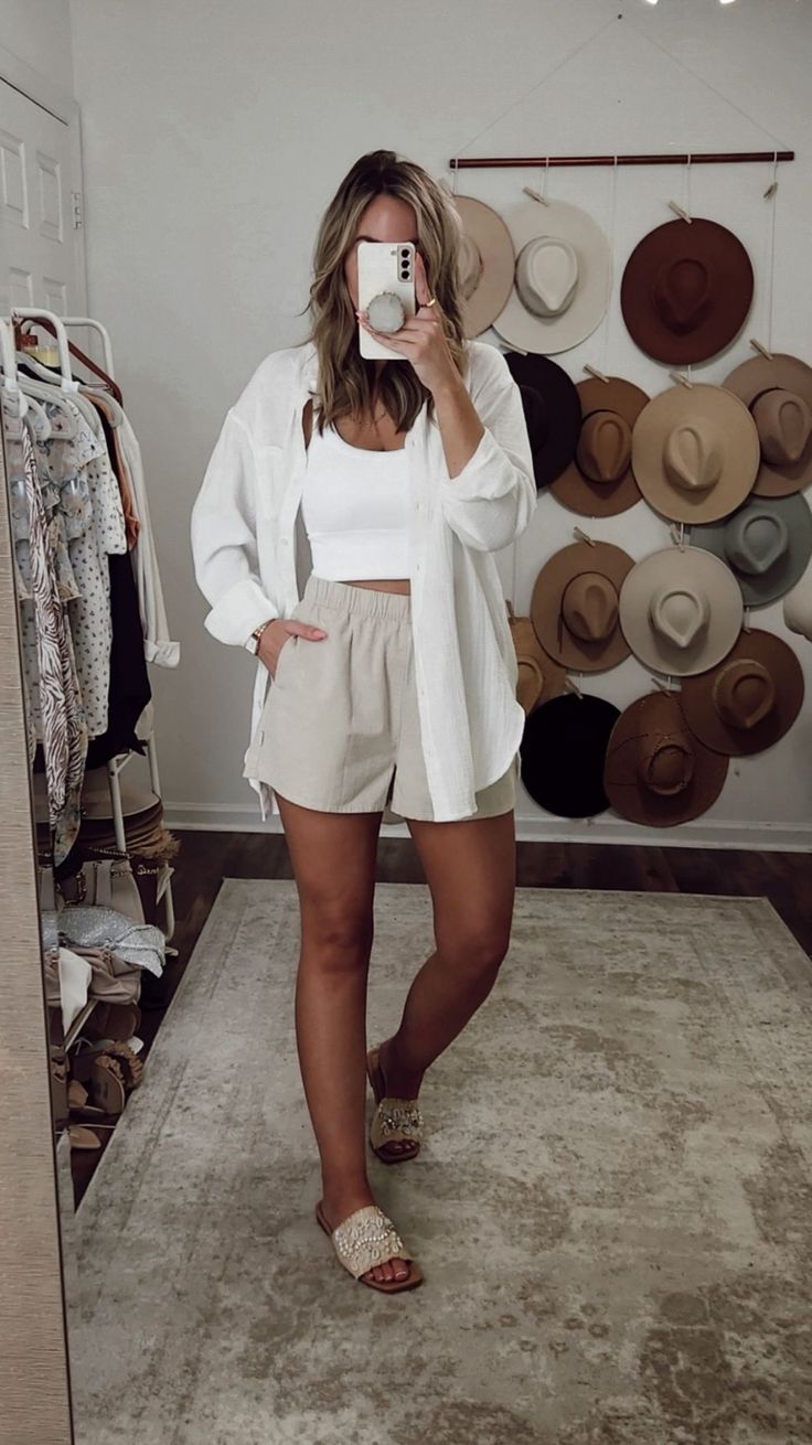 - Beige Linen Shorts: Their loose cut ensures comfort on the hottest days.
