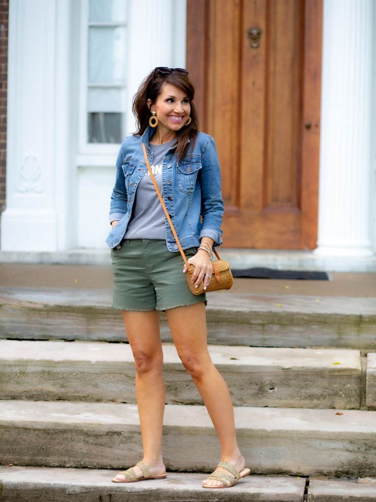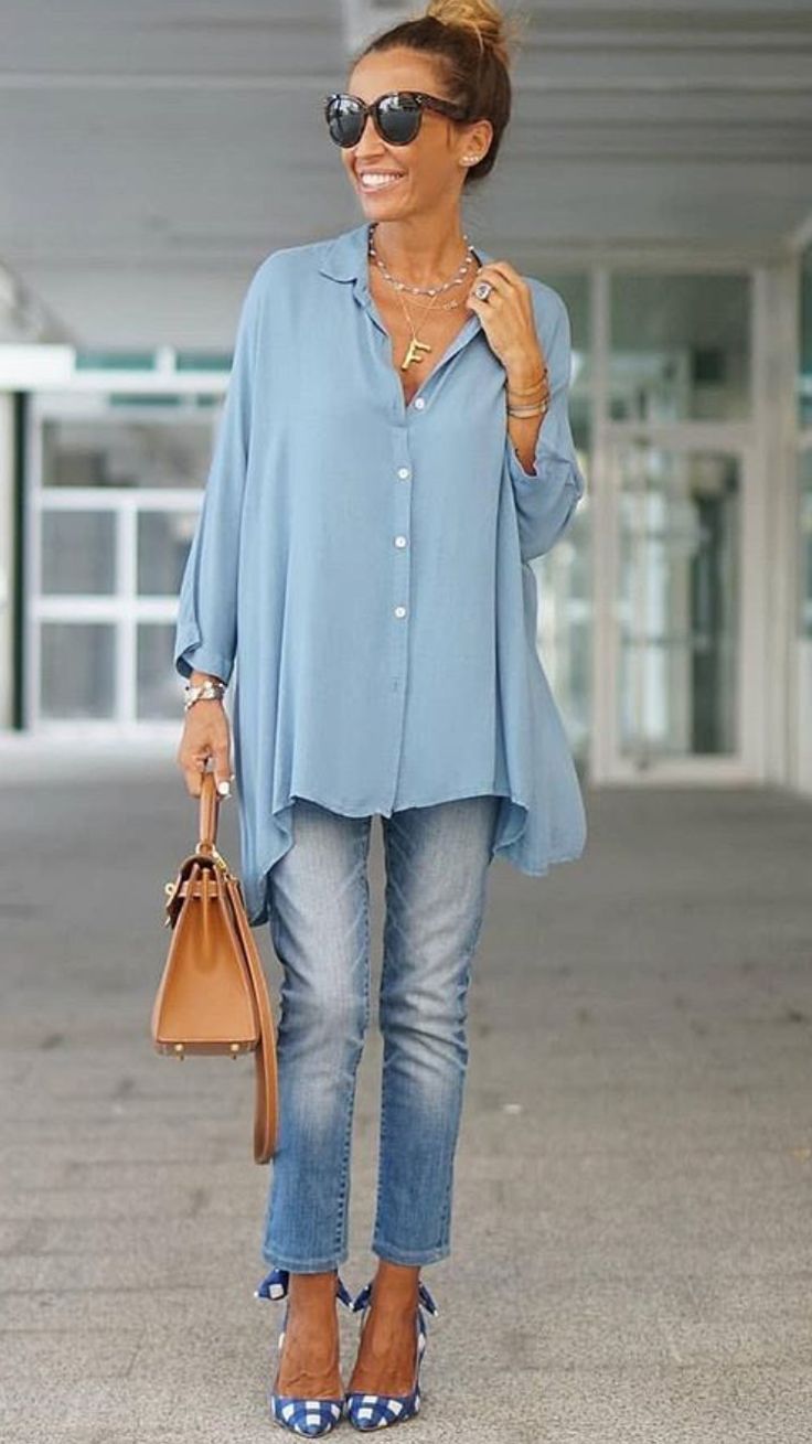 Stripes and denim, a duo that’s as timeless as it is fresh for the summer season. Here we have a style that whispers classic charm with a modern twist, suitable for summer outfits women over 50 fifty not frumpy casual outings.