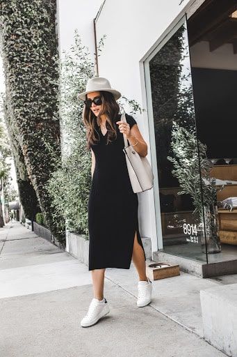 - White Sneakers: The clean white sneakers are a nod to both comfort and contemporary fashion trends.
