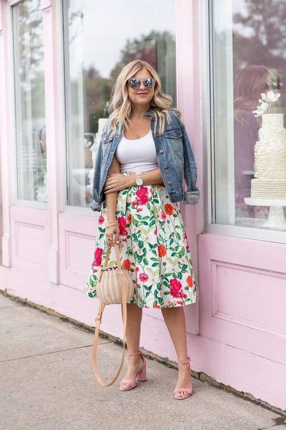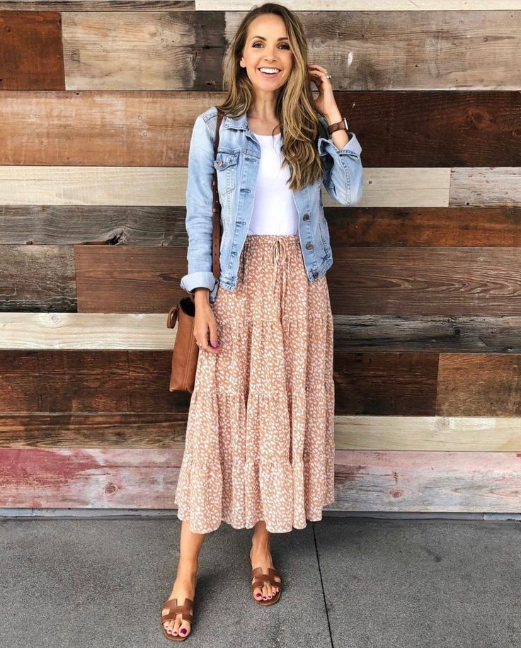 For those who love the comfort of a breezy skirt but need a touch of practicality, a patterned skirt paired with a denim jacket strikes the right balance. This easter outfits for women casual option is ideal for a family barbecue or a picnic in the park.