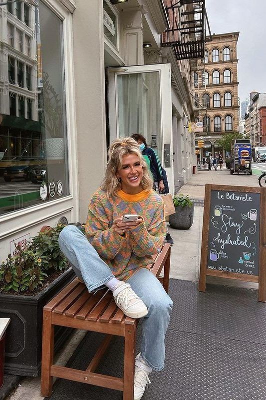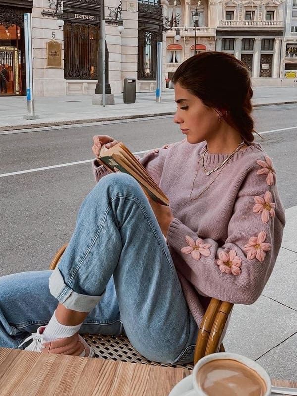 For a laid-back family day, why not opt for comfort without sacrificing style? A cozy pastel sweater paired with relaxed jeans is the way to go. It’s a cute look that’s also practical, perfect for an Easter egg hunt with the kids or a casual get-together.