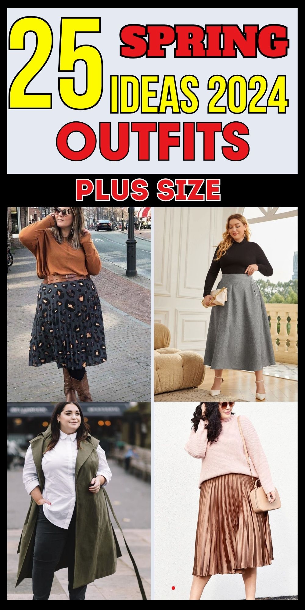 Pleated skirts exude femininity and can be a great addition to spring outfits 2024 trends plus size. A soft pastel sweater with a metallic pleated skirt combines comfort with glamour, suitable for both daytime and evening events.