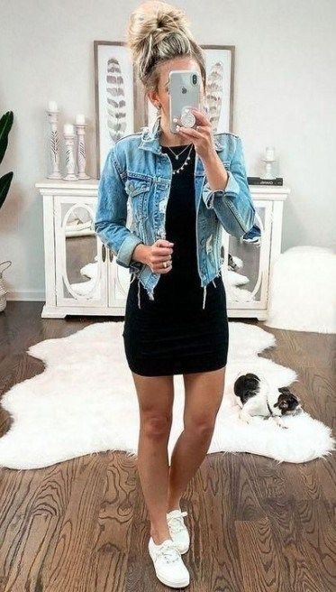 The classic combination of a black dress and a denim jacket never goes out of style. It’s a simple yet effective look that can be dressed up or down. Paired with sneakers, it’s the epitome of a baddie spring outfits casual staple for any wardrobe.