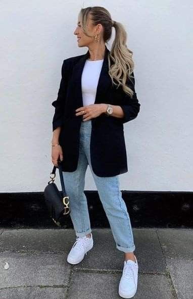 Black is always in, and when paired with classic denim and sneakers, it offers a timeless look. This outfit is easy to replicate and is a staple for those who admire spring fashion trends for women over 40.