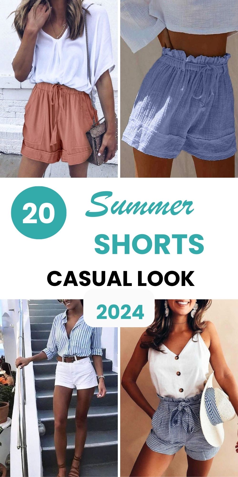 - White Shorts: High-waisted and belted, they offer a flattering silhouette and a hint of formality.