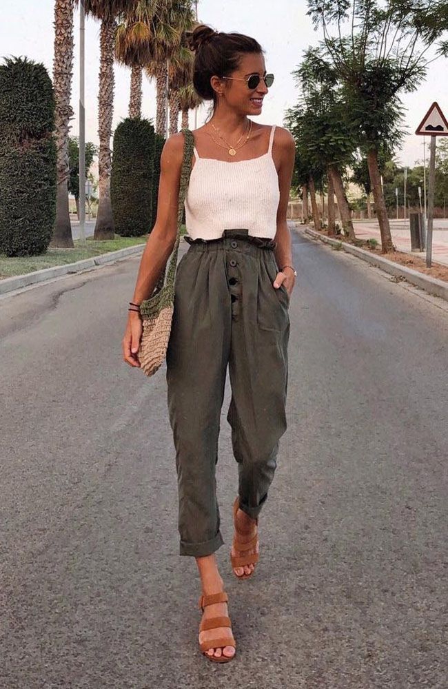 - White Tank: It’s a refreshing staple that balances the structure of the pants with delicate femininity.
