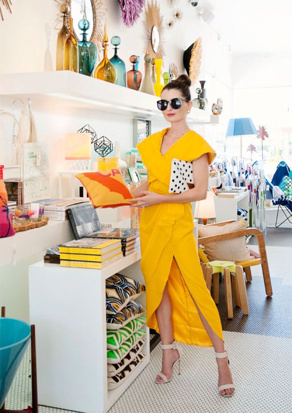 Bold and vibrant, this cute palm springs outfit encapsulates the joy of a leisurely shopping spree. The bright yellow jumpsuit, adorned with a playful polka dot clutch, makes a statement of confidence and joy. The silhouette is modern with a wrap waist and wide legs, ideal for navigating the chic stores and galleries that dot Palm Springs.