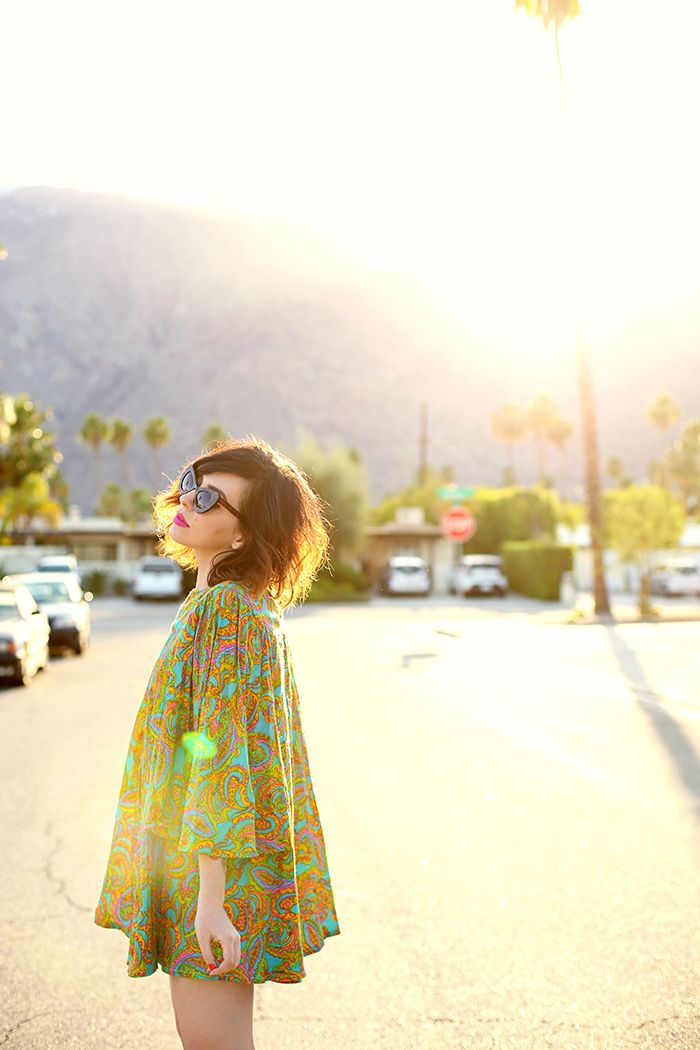 As the day winds down, the warm desert glow illuminates a palm springs outfit fall that’s both retro and refreshingly modern. A psychedelic print dress captures the free-spirited vibe of the 60s, updated for today’s fashion-forward crowd. This look is all about making a statement while watching the sun dip below the mountains.