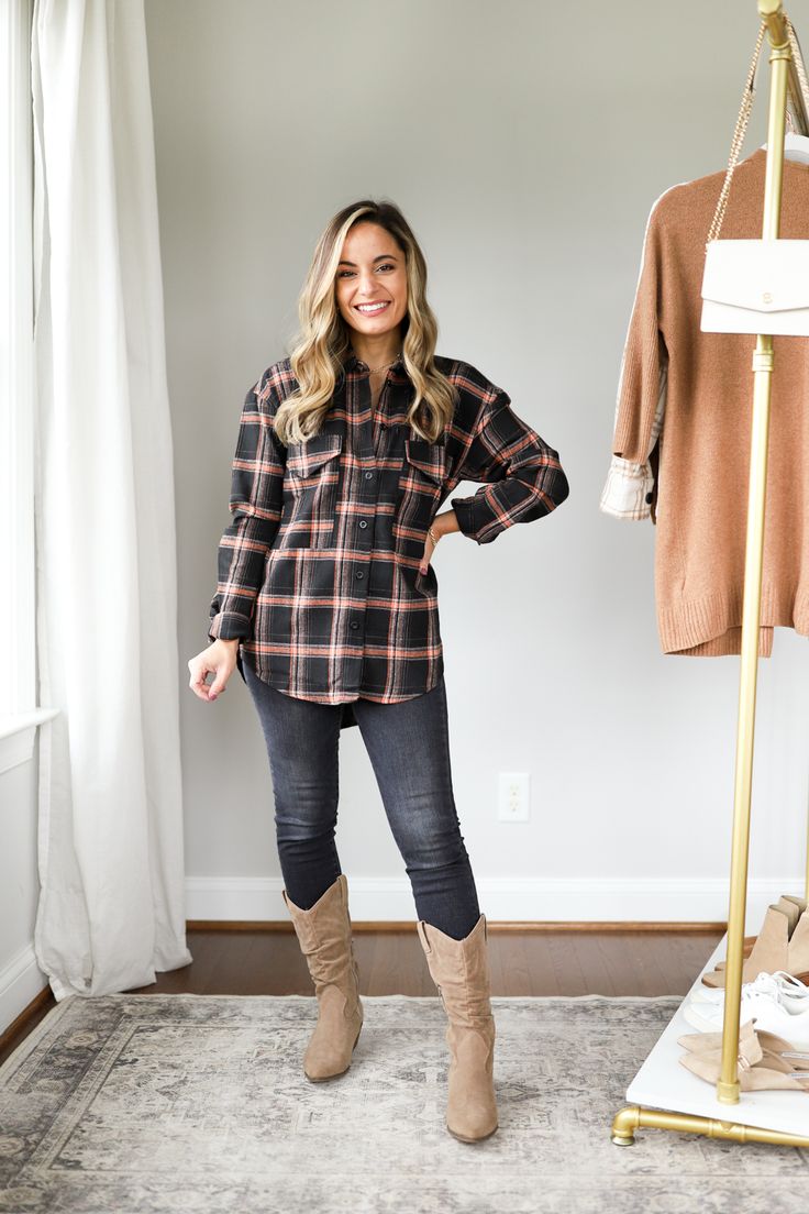 A plaid shirt is a versatile piece that screams fall and fits right in with mom sports day outfits. Teamed with dark jeans and tan boots, it’s the ideal pick for outdoor activities or a casual stroll through the farmers’ market.