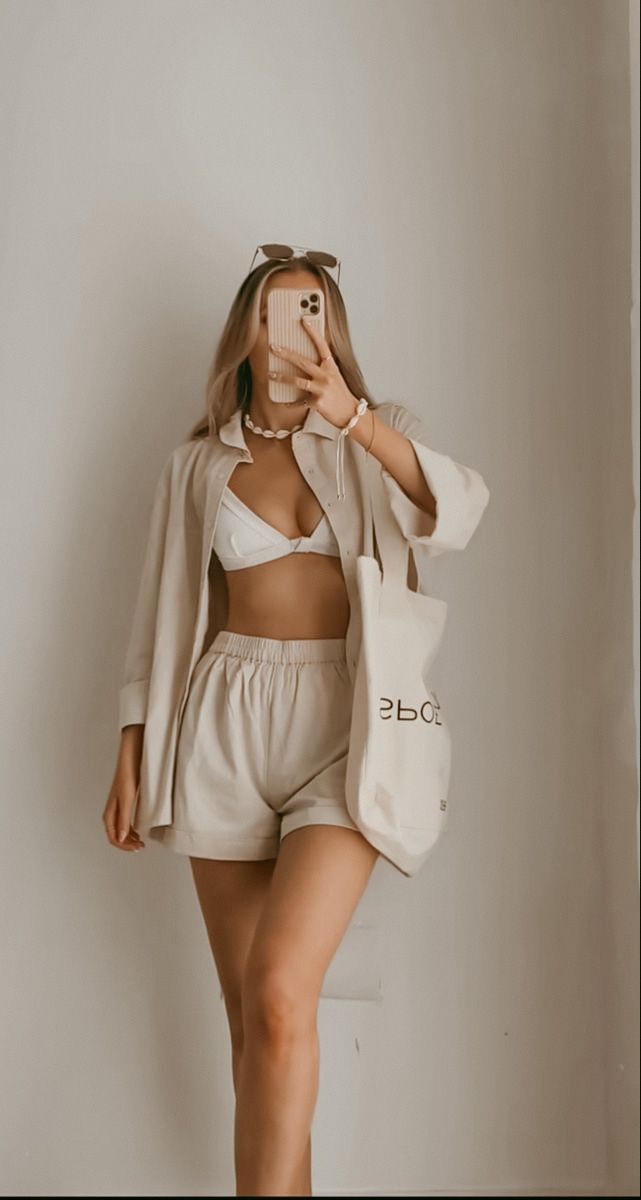 - White Cropped Bralette & Beige Shorts: This pairing is universally flattering, highlighting a toned midriff and making it a fresh pick for those looking for summer vacation outfits hijab when paired with a modest top layer.