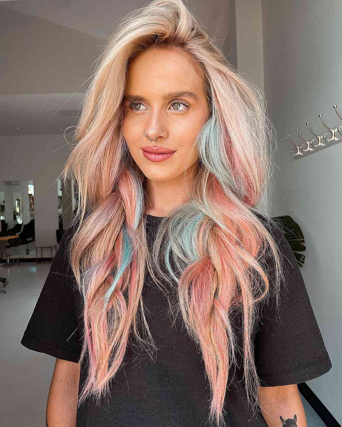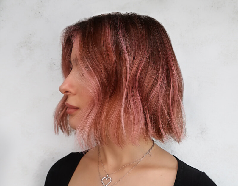 Next in our summer hair color ideas colorful lineup is a peachy softness that screams summer bliss. This delicate hue mimics the inner part of a seashell and captures the gentle dawn of a new day. It’s soft, it’s subtle, and it’s undeniably romantic.