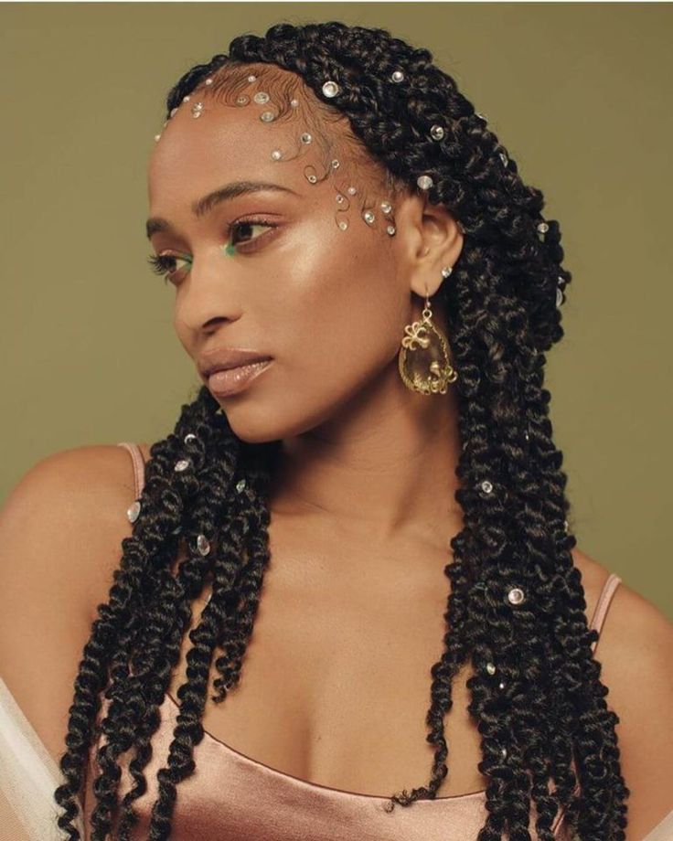 Adorned with jewels, this hairstyle elevates spring twist hairstyles natural hair to a level of regal sophistication. Each twist acts as a strand to showcase beauty, blending the traditional with a touch of modern glamour.