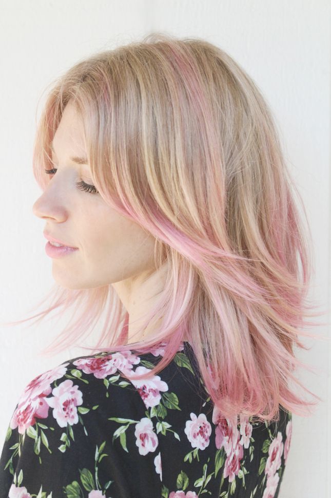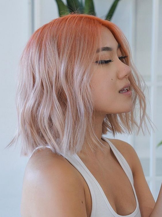 The Pink Ombre Waves is a soft yet striking choice, proving that spring hair colors for blondes can be both delicate and daring. The transition from a dark root to rosy pink ends, crowned with a playful top knot, offers a fresh take on balayage for brunettes looking to experiment with blonde tones. This color scheme suggests a youthful spirit paired with a touch of romance.