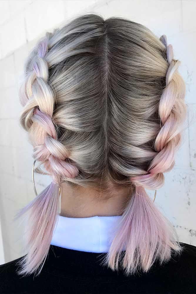 Dual-toned pigtails offer a playful yet chic summer look, combining cool blonde with pastel pink ends. This hairstyle strikes a balance between edgy and sweet, fitting perfectly into the summer hairstyles for medium hair category.