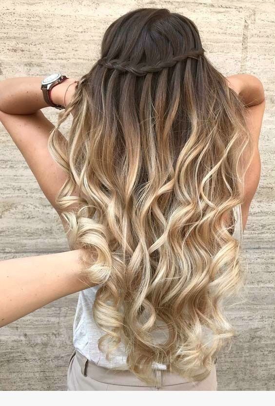 Capturing the golden glow of the setting sun, this hairstyle is a love letter to long hair. A simple braid crowns the head, giving way to lush, voluminous curls that speak of romance and warmth, perfect for those summer hairstyles for long hair.