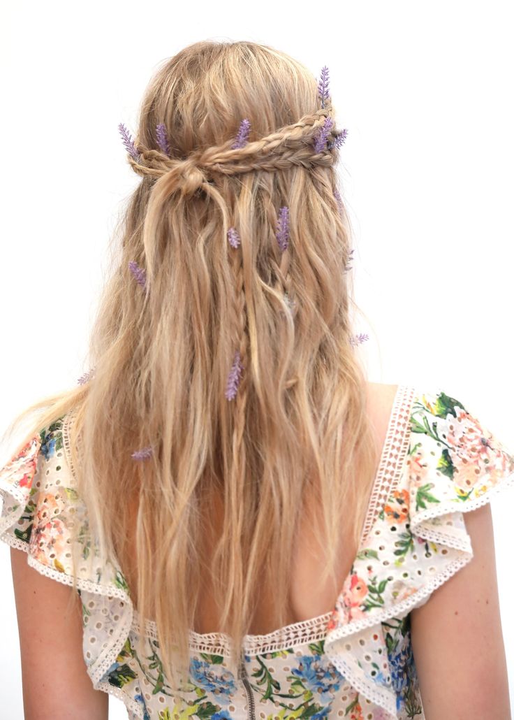 Incorporating the whimsy of wildflowers, a braid that captures the essence of spring with woven lavender is a dreamy nod to bohemian chic. This hairstyle is a perfect match for spring hair styles for brunettes, adding a pop of color and life to their natural hue.
