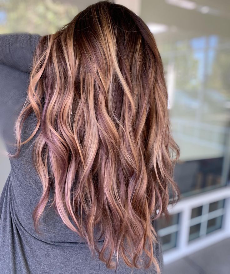 A captivating dance of chestnut and pink undertones breathes life into the hair, reflecting the warm, rosy hues found in a springtime sunset.