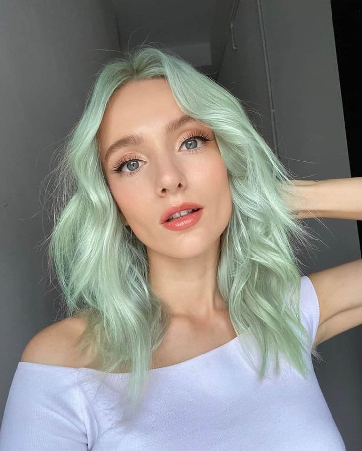 For the bold at heart, this seafoam green reflects the tranquility of spring waters, providing a unique and serene hair color choice.