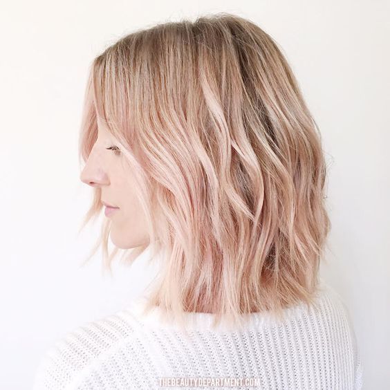 This bob is perfect for those with a love for subtle, pastel colors but who also value a low-maintenance routine. To keep this delicate blush tone vibrant, washing with a color-protecting shampoo and using a UV spray before heading out into the summer sun is advisable.
