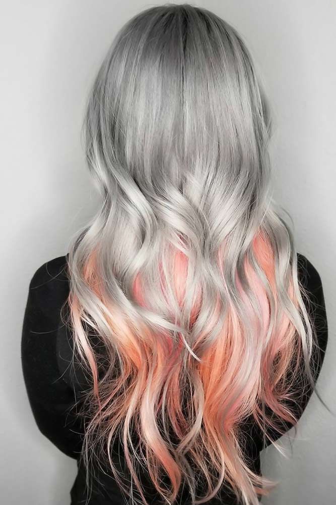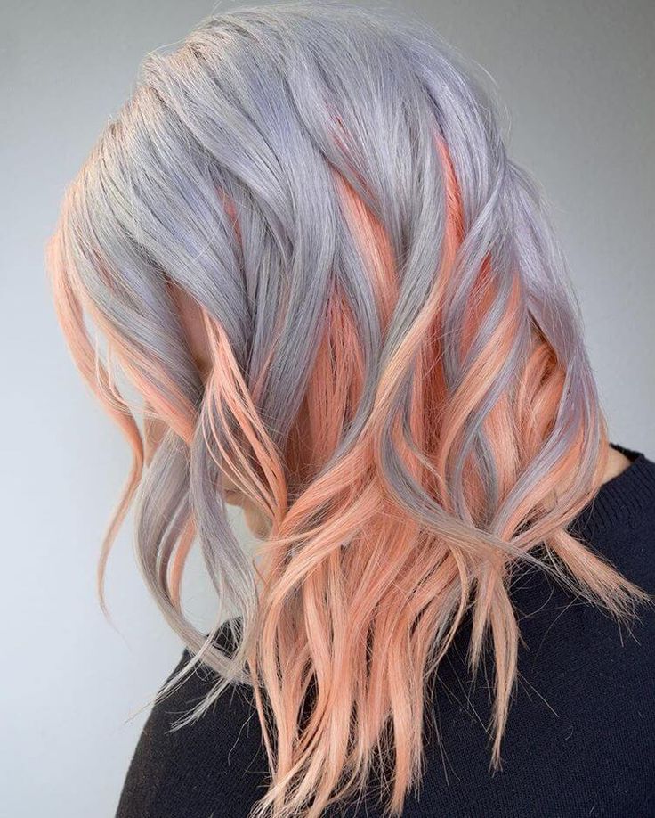 This color blend is perfect for those looking to make a statement without the commitment of a full head of vivid color. Maintenance will be your companion here, with a need for toning treatments to keep the silver from yellowing and color-safe products to ensure the peach doesn’t lose its juiciness.