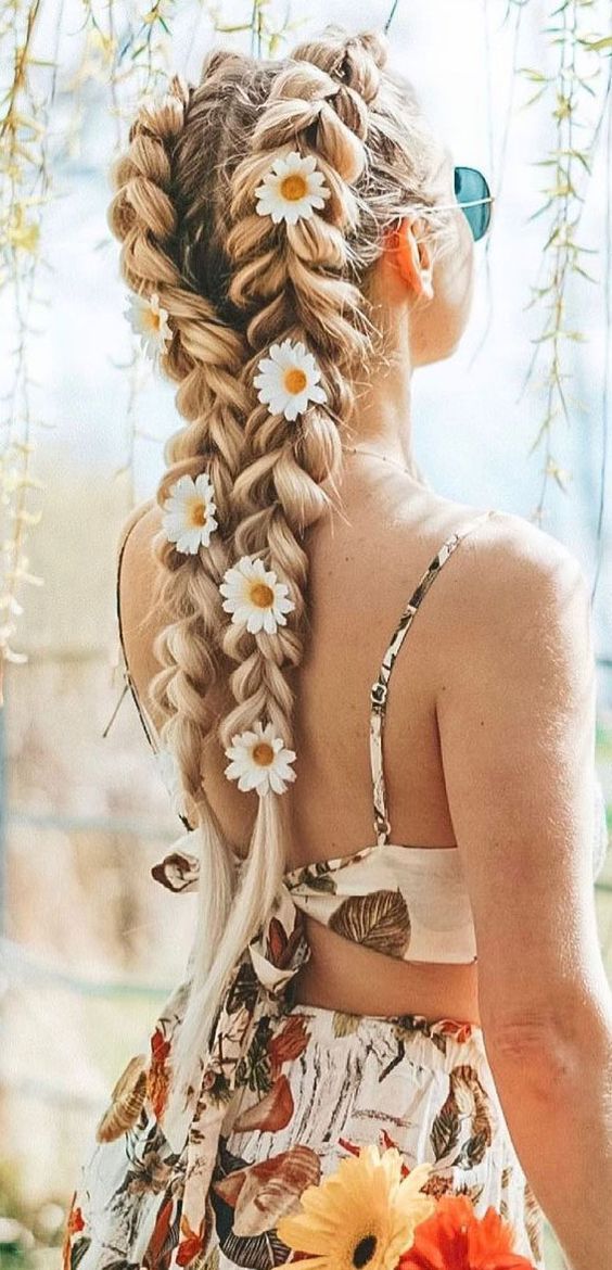 This hairstyle is a favorite for those with medium to long hair seeking a playful yet practical summer look. It’s a beautiful way to manage your hair on those warmer days while adding a touch of nature’s beauty. To keep this look fresh, a dry shampoo can be a lifesaver, and don’t forget to use a UV protectant spray to safeguard your tresses against the summer sun.