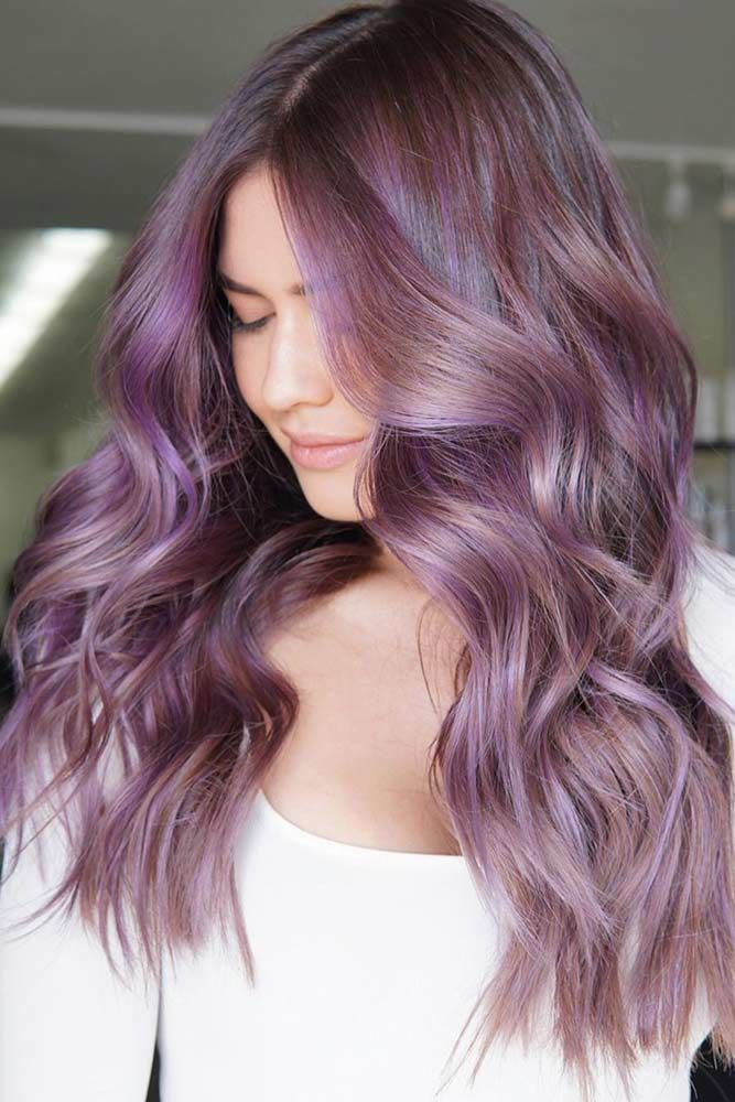 For those willing to make a bolder statement, this stunning gradient of purple hues is like a sunset captured in your hair. Starting from a deep violet at the roots, it melts into a lighter lilac, creating a warm spring hair color palette that’s both daring and mesmerizing. It’s an adventurous choice for the springtime that can be dressed up or down depending on the occasion. Style this haircolor with monochromatic outfits to let the vibrant colors take center stage.