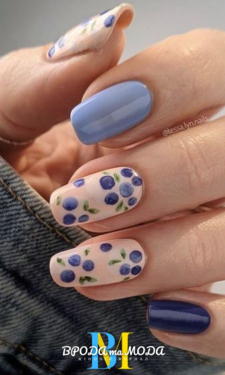 A soft blue manicure with a floral pattern is a reflection of summer freshness and ease. Combine such a manicure with light fabrics, for example, linen or cotton, to create a light and airy image.
