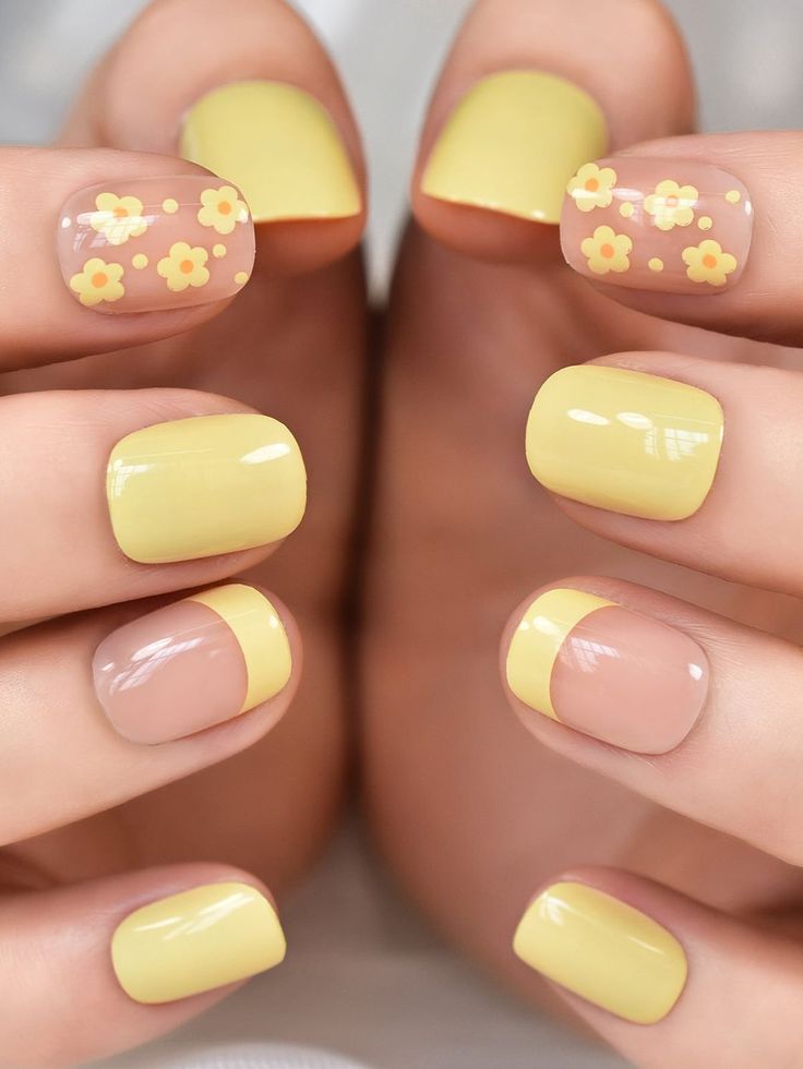 Imagine the soft hues of the morning sun captured on your fingertips. This design is a pastel perfection, blending spring nails yellow pastel shades with delicate white daisies. It’s a cute and simple look that echoes the gentle awakening of spring. The nails are kept at a modest length, making this style perfect for those who prefer spring nails yellow short. It’s easy to wear and adds a touch of playfulness to any outfit.