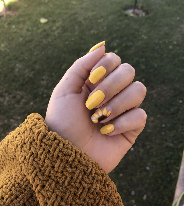 For those who adore pastel tones, spring nails yellow pastel offers a softer take on the trend. The nails are painted in a delicate yellow hue, providing a subtle nod to the season. One nail features a sprinkle of glitter, adding just the right amount of glam without overpowering the simple beauty of the design. This style speaks to the woman who enjoys a blend of playfulness and sophistication in her fashion choices.