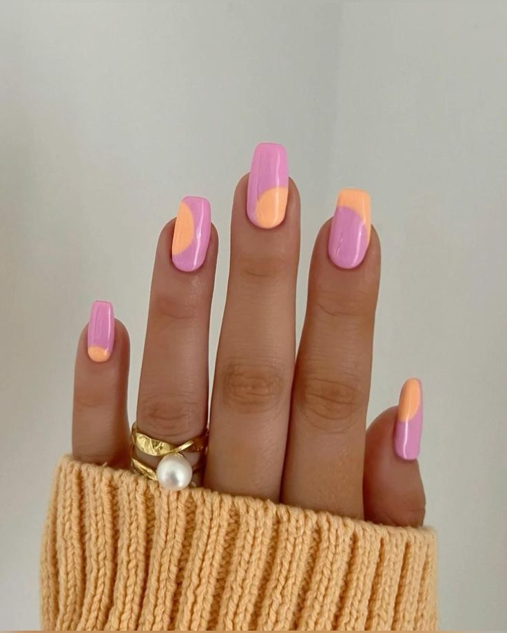 Sharp angles meet soft pastels in this contemporary design. It’s a blend of march nails spring rainbow and architectural aesthetics, a choice for the woman who commands any room she enters.