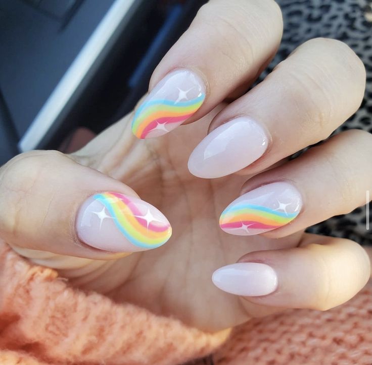 Why not combine the beauty of a rainbow with the mystery of the night sky? These nails feature a star-studded rainbow that makes every gesture a celestial event. It’s a unique take on the spring rainbow nails theme and perfect for the woman who loves to dream.