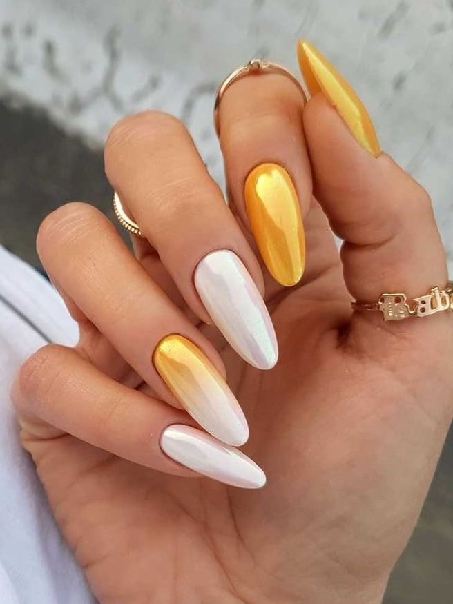 As the sun rises, so does the golden hue on your nails. The design captures the warm glow of morning with spring nails rainbow tips that transition from a creamy white base to a shimmering yellow. It’s a look that says you’re ready to take on the day with confidence and style.