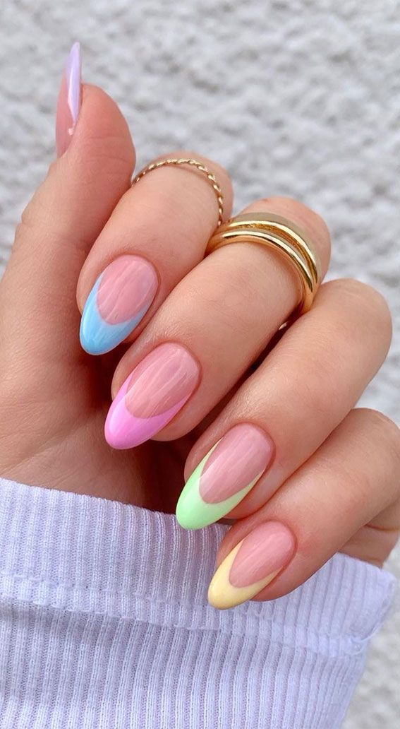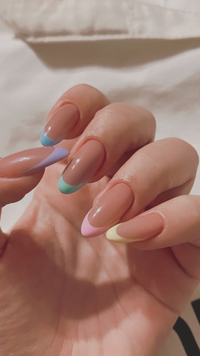 Whispering tales of pastel-hued skies and soft sandy beaches, these summer nails oval shape pink are an ode to the serene side of summer. Each nail tip is kissed with a different pastel shade, embodying the gentle colors of a summer’s dawn.