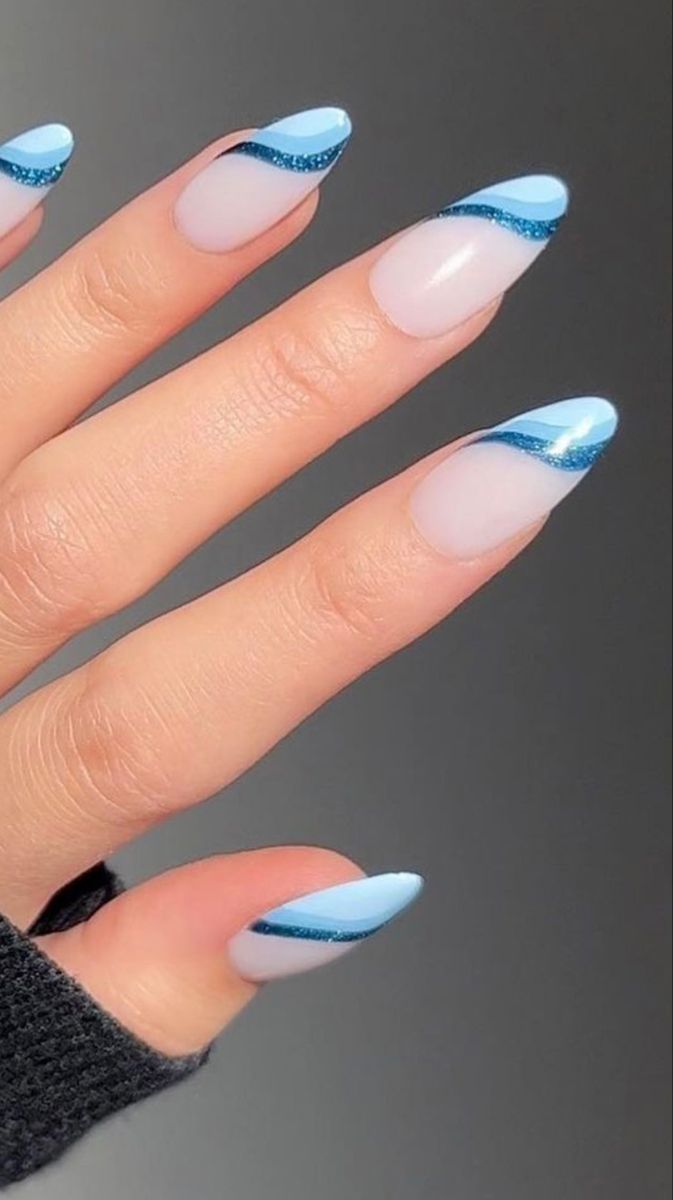 Encapsulating the dynamic ripples of a summer’s ocean, these summer nails oval blue feature a sparkling twist on the French tip. The glittery blue not only adds a splash of vibrancy but also a playful, party-ready vibe that can take you from a casual day outing to an evening soiree by the beach.