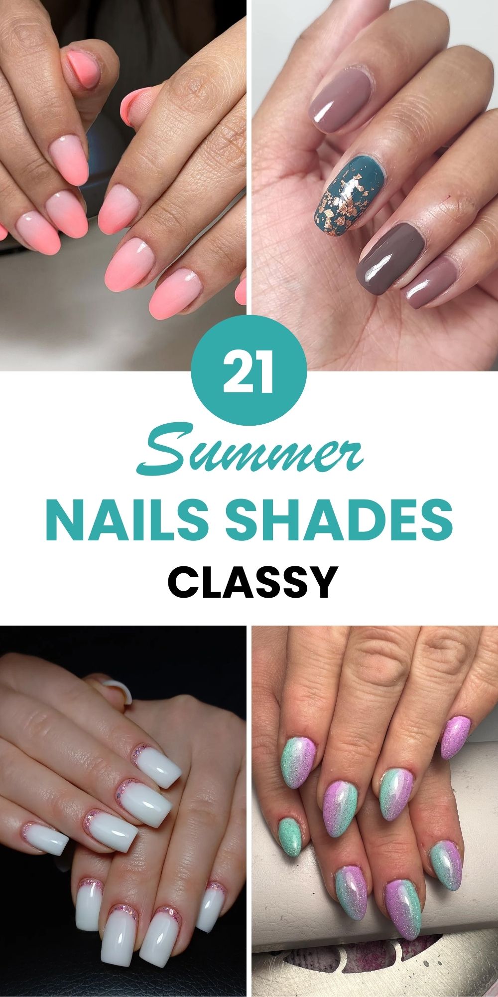 Here, the classy summer nails designs come to life with a unique pairing of muted taupe and a rich teal, accented with gold flakes for a touch of luxury. The square shape is perfectly classy summer nails square, giving a modern touch to what could easily become a timeless design.
