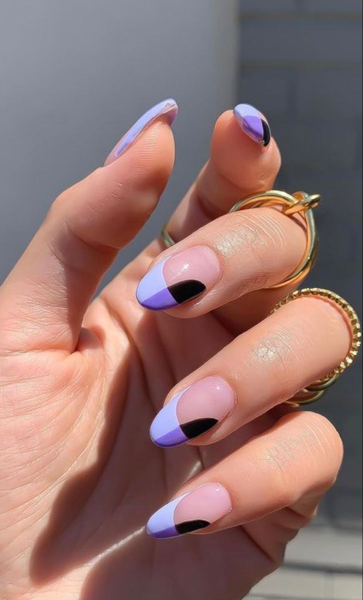 For lovers of april nails ideas simple and chic, this nail design reimagines the classic French tip with a contemporary edge. The nails are shaped into a gentle oval, and each tip is dipped in a lavender hue that fades into a transparent pink near the cuticle. The design is minimalistic yet captivating, perfect for those who seek a subtle yet fashion-forward look.