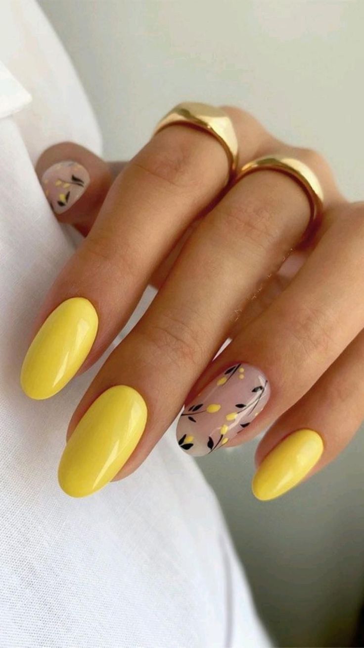 The vivid colors of March find their joyous expression in this sunny manicure. Bright yellow hues, synonymous with the dawning spring, dominate the nails, with one feature nail presenting a playful canvas of abstract florals. The design whispers of blooming gardens and sunny days ahead, making it a perfect choice for those who love to carry the sunshine with them. To wear this style, pair it with a crisp white blouse and denim jeans for a casual day out or a flowy sundress for a more feminine touch.