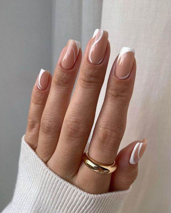 Here’s a modern take on the French manicure, with a swooping twist that adds a contemporary edge to a classic style. The soft nude base with white tips is an example of an idea simple yet sophisticated, and is versatile enough to wear from the boardroom to the ballet.