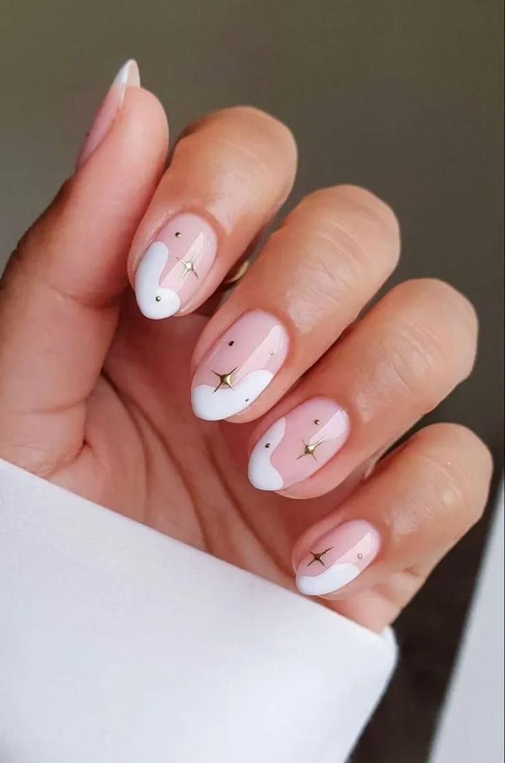 This pink canvas, accented with delicate gold stars and soft white clouds, invites you to daydream. It’s a playful and ideas spring-inspired approach to nail art, perfect for those who prefer a narrative on their nails, telling the story of spring’s ethereal beauty.