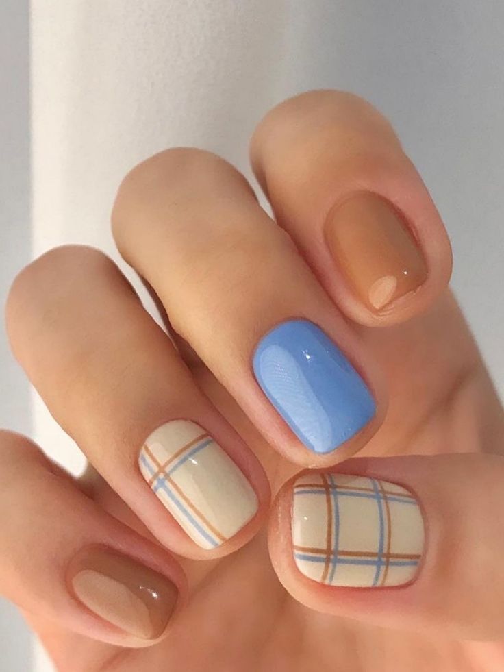 Art meets nature in this design, where abstract botanical illustrations adorn a pastel palette. The cool blue and warm coral create a beautiful contrast, ideal for those seeking a creative and modern twist on traditional spring motifs. This march nails spring gel design would be a perfect match for both neutral outfits and color-blocked ensembles.
