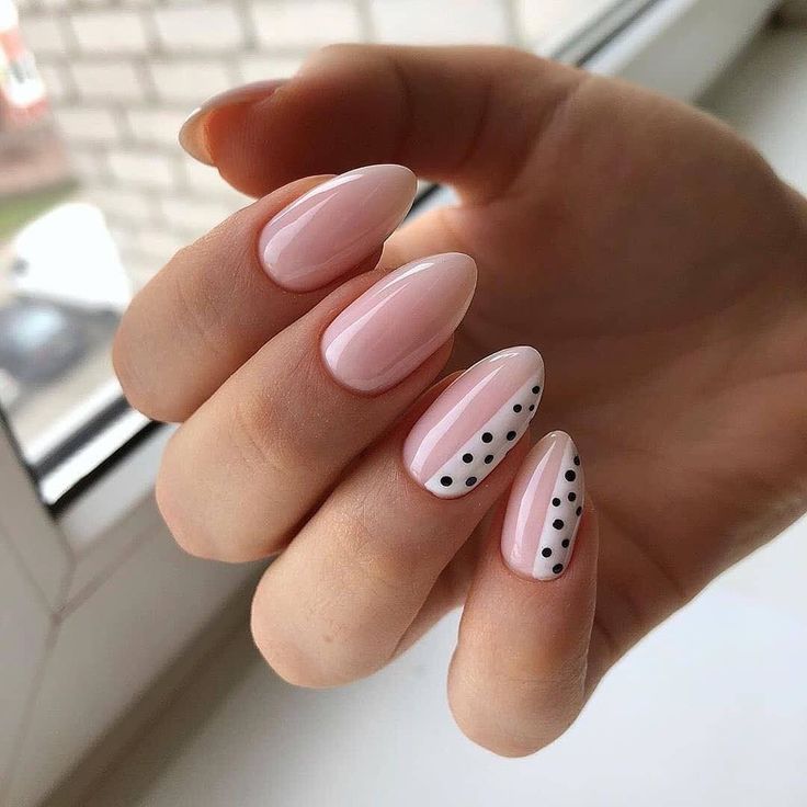 For a playful yet cozy look, these nails pair perfectly with the soft texture of a knit sweater. The black polka dots on a pale pink base are classic and fun, a timeless idea simple that never goes out of style. This design is a great way to add a touch of whimsy to your march nails spring dip collection.