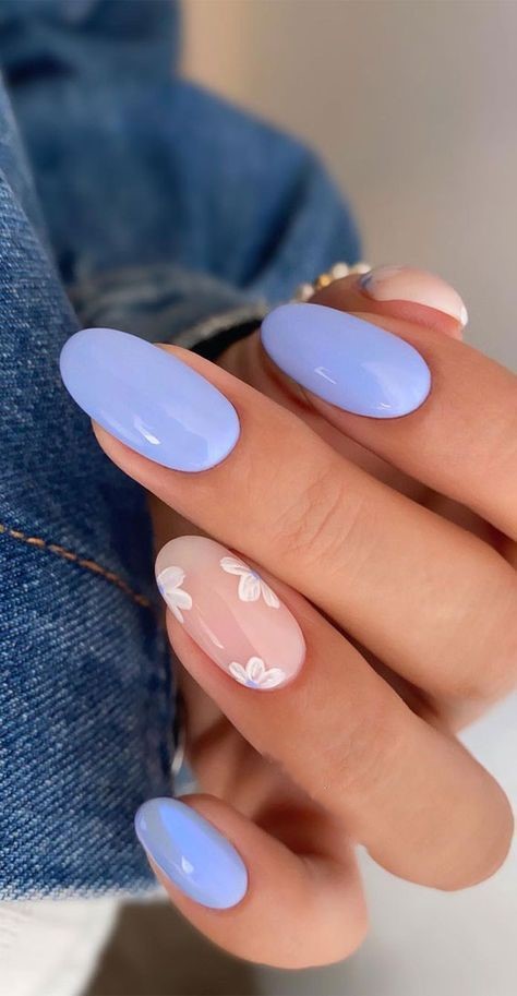 Imagine a serene spring day, with soft blue skies dotted with wispy clouds—that’s the inspiration behind this nail design. The gentle blue contrasts with the spring acrylic swirls, creating a dreamy effect that’s both relaxing and stylish.