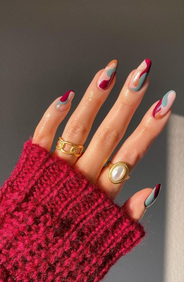 Bold and artistic, this manicure makes a statement with its abstract shapes in contrasting colors. It’s a design that defies the traditional, ideal for the woman who loves to stand out and express her individuality. This look pairs beautifully with monochrome outfits, allowing the nails to take center stage.