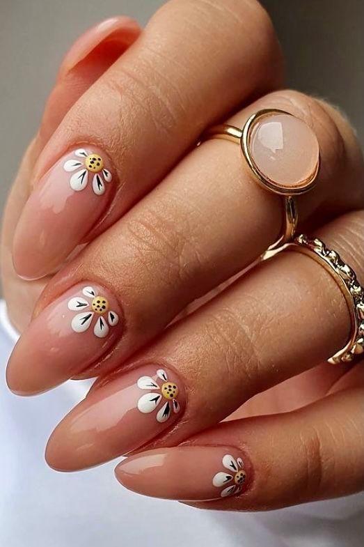 For the minimalist with an eye for detail, this manicure balances a sheer base with intricate floral art. The neutral backdrop makes the white and gold floral motifs stand out, exuding elegance and sophistication. This design can gracefully transition from office wear to evening wear without missing a beat.