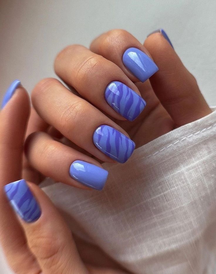 The soft lavender base of these nails is elevated with zebra-like stripes, creating a fusion of wild patterns and tranquil colors. This design is perfect for those who appreciate a playful yet polished look, blending the spring nails color ideas with a hint of adventure.