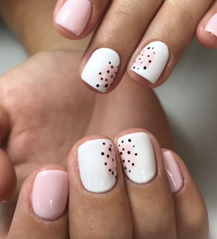 A classic pink base accented with bold black speckles offers a modern twist on the polka dot trend. This design is chic and fun, an ideal choice for a spring nails colors dip enthusiast looking to add a dash of whimsy to their daily wear.