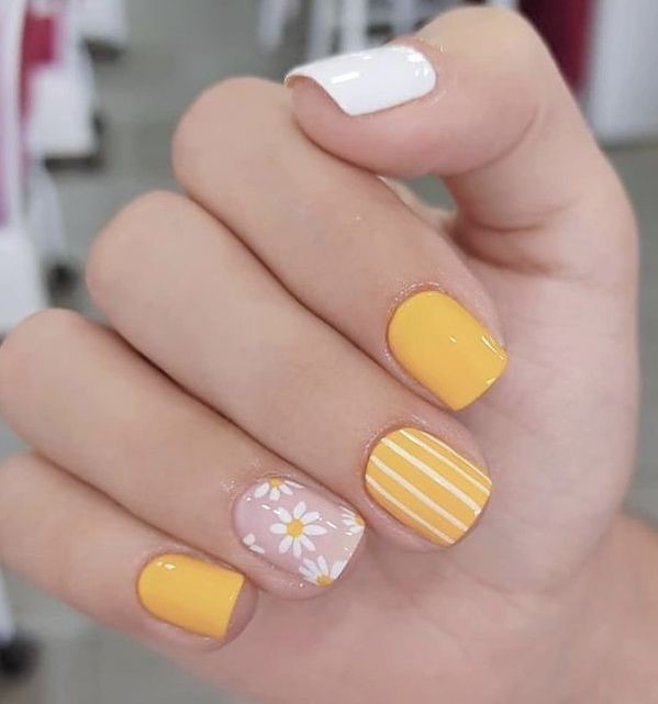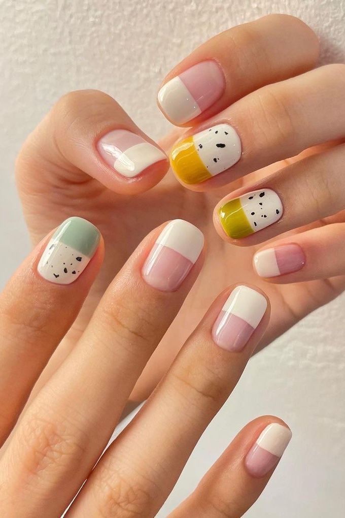 Spring is synonymous with fun, and what’s more joyful than a pop of color? The playful juxtaposition of matte whites, sunny yellows, and cool greens gives a nod to the spring nails colorful vibe. It’s a bold statement that says you’re ready for sunshine and long afternoons in the café.