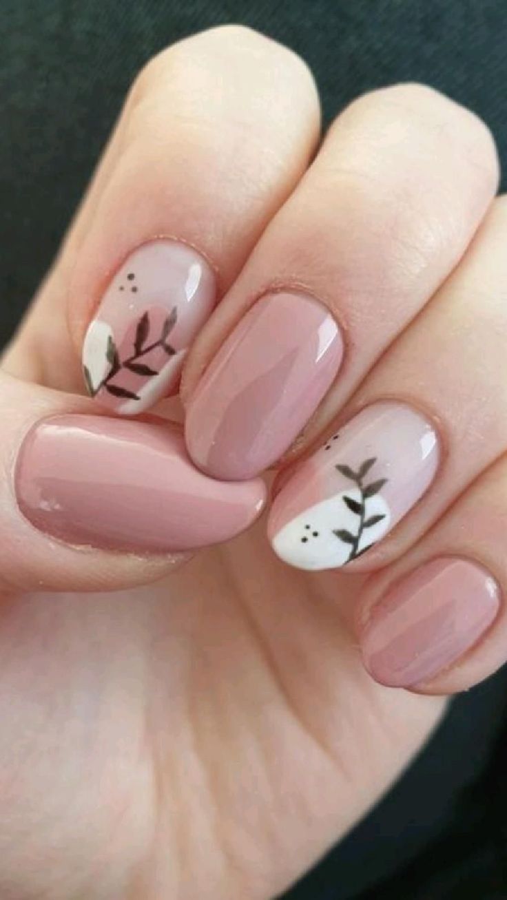 This manicure captures the essence of a spring garden with its subtle pink base and delicate botanical accents. It’s a harmonious blend of femininity and natural beauty, ideal for those who appreciate the artistry found in nature’s own designs.
